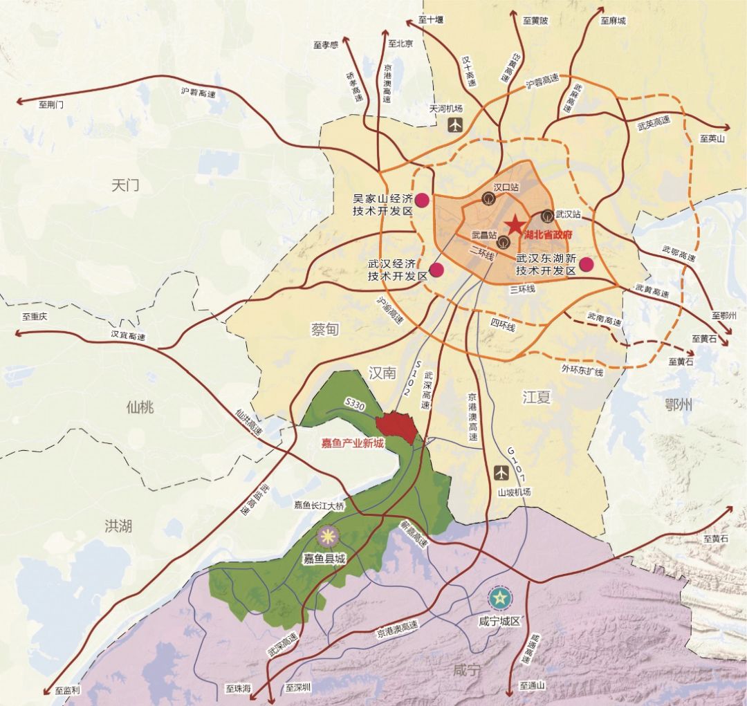 在包括京港澳高速、武深高速、环城高速、法泗连接线、嘉鱼长江大桥等在内的“三高一桥一港”相继通车与推进,以“半小时经济交通生活圈”的成型,加速嘉鱼深度融入武汉都市圈发展体系,建成与武汉“同圈同策、互联互通”的发展共同体。