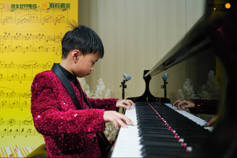 少年业主们的表现同样令人惊艳。联投驿园的周曦文带来的钢琴独奏《C大调卡农》,以循环往复的温暖旋律,如冬至阳光般包裹着现场每一位观众;联投广场的吴琼瑶挑战肖邦《博士练习曲》,将这首被誉为“钢琴家试金石”的高难度曲目演绎得流畅而富有张力,尽显扎实功底;联投花山郡的何子为弹奏的《就是哪吒》,热血旋律中传递出“我命由我不由天”的勇气,引发年轻观众的强烈共鸣。