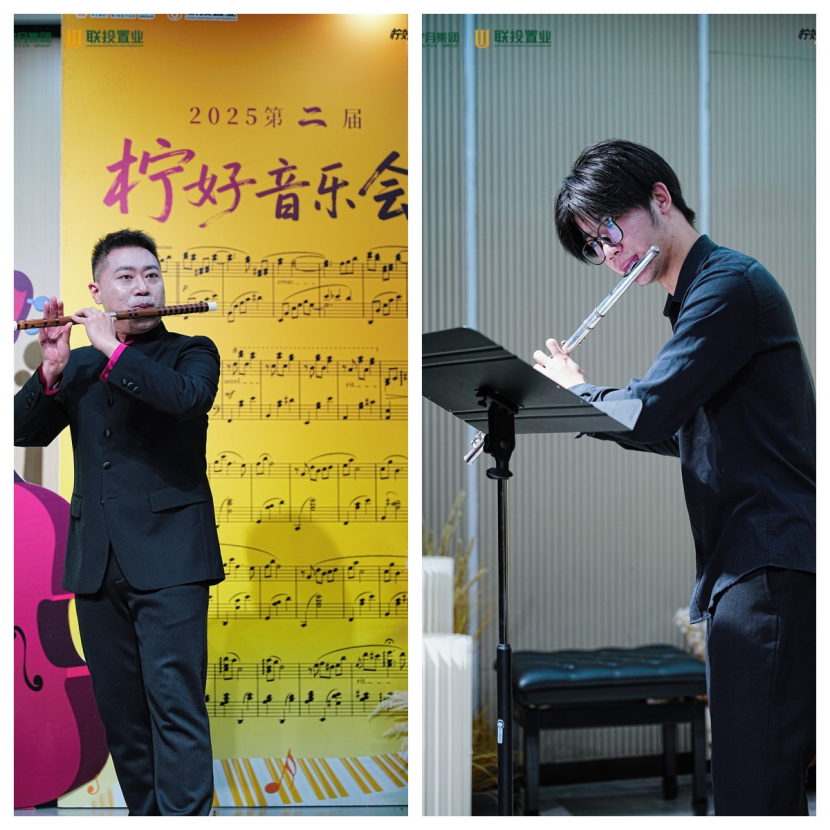 竹笛演奏家谢闻吉(左)长笛演奏家于斯盛(右)现场表演