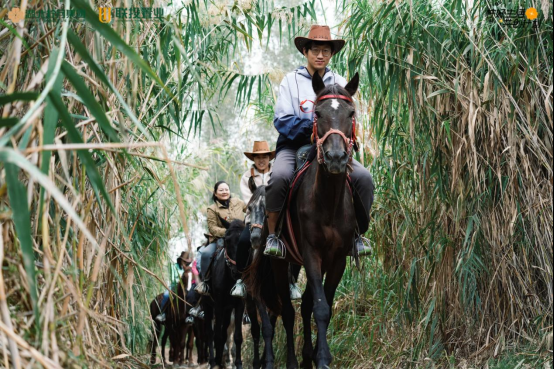 在双柳江豚湾,邻里组成的乘骑队伍,穿越丛林与滩涂,共寻武汉郊野的最美秋天;
