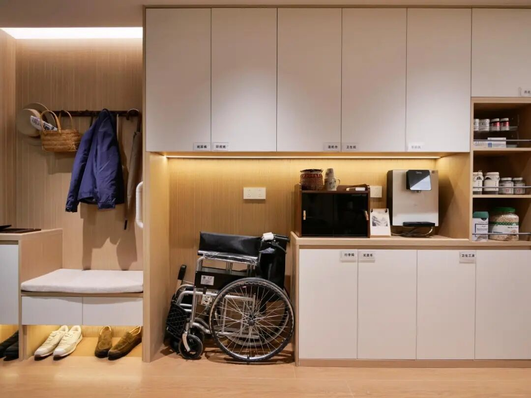 走进“柠月”的系列项目之中,百余项适老化设计遍布生活的各个角落:从玄关处带扶手的换鞋凳、卫生间预留的L型安全扶手和轮椅回转空间,到卧室的毫米波雷达无感跌倒监测系统,电动护理床一键切换,给予银发群体“润物细无声”的细致关怀与默默守护。
