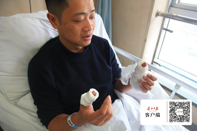 29日上午,长江日报记者在同济医院外科楼内见到了吴方健,谈起前一晚的经历,他镇定地说,只要能保护人质安全,哪怕他手指被切断也是值得的。