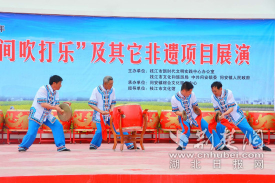 据悉,目前枝江市共有国家级非物质文化遗产保护名录项目1项、省级非物质文化遗产保护名录项目3项、市级非物质文化遗产保护名录项目7项,有省级非遗代表性传承人杨和春、李从海两人、市级非遗代表性传承人60余人。