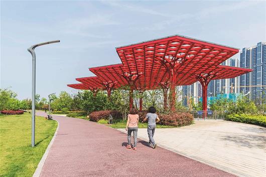 在此基础上,中国一冶在江滩内建设了多个下沉式生态草溪和雨水花园,将“渗、滞、蓄、净、用、排”的“海绵城市”理念贯穿全程,打造全国首批海绵城市建设试点样板。
