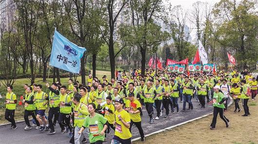 2019年3月16日,首届青山绿水红钢城国际半程马拉松在青山江滩举行,200余名中国一冶职工与万名海内外跑友一同奔跑在美丽江畔,感受老工业基地转型升级、生态回归、践行长江大保护战略及新发展理念的非凡魅力。