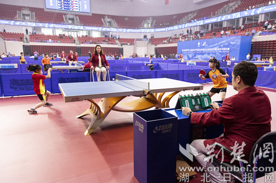 荆楚网客户端—荆楚网消息(记者 李燕 通讯员 宋亮)5月1日上午,第七届世界军人运动会(以下简称"军运会")乒乓球项目测试赛暨2019年武汉市青少年乒乓球比赛,在位于武汉临空港经开区(东西湖区)的武汉五环体育中心体育馆拉开帷幕。这场赛事将对军运会乒乓球场馆运行进行全方位检测。
