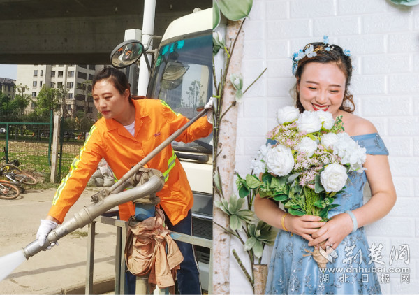 何丽霞是洪山环卫清扫三队的水车白班清洗班班长。她负责的清洗班有68名洒水车司机。平时她每天在辖区路面巡查,调度路面清洗作业。遇到工地带泥、水泥砂浆漏洒,就要及时调度洒水车冲洗。何丽霞上一次专门化妆拍照,也是1998年结婚的时候。她喜欢古典美,所以挑了一套旗袍。
