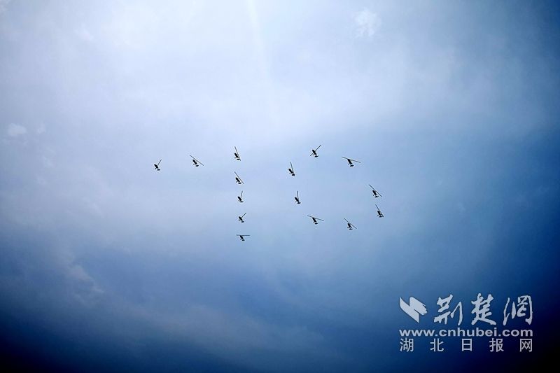 荆楚网客户端-荆楚网消息(记者 陈泉 实习生吴茨 王梦君)5月18日,第二届世界飞行者大会在武汉汉南通用机场上开幕,15架“猎鹰”自转旋翼机在天空呼啸而过,“70”编队造型格外引人注目。为了庆祝中国建国70周年,中国15架“猎鹰”自转旋翼机在空中编队“70”造型。
