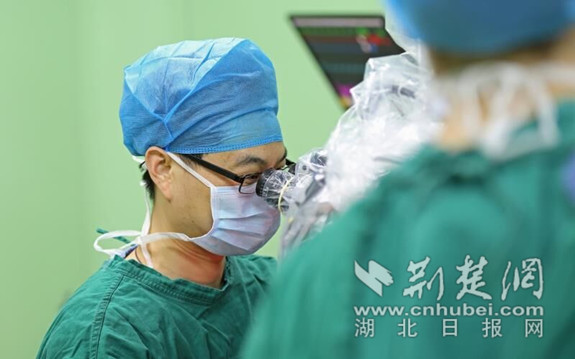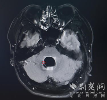 上月初,他到武汉大学中南医院神经外科就诊,李志强教授仔细察看他的CT及核磁平扫片,看到第四脑室有微小异样,因该处靠近脑干和小脑,李志强教授询问他是否有走路不稳等情况,得到“有时会有走路像踩在棉花上轻微摇晃”的答复。在诊室走了两个来回展示给医生看后,赵明被收入院做详细检查。