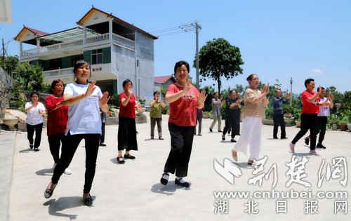 荆楚网消息(通讯员彭清慧 余安敏 唐芳)7月8日,高坪镇干沟村9组20多个村民集中在刘家台子小区跳广场舞,刘朝统、刘权统、刘四统三家都是男女老少一起跳,已离开家乡四年多的向大英带着儿女们回家探亲,也被周边的和谐氛围感染。