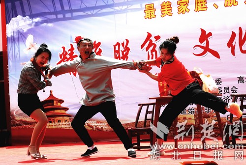 “那个刁蛮的媳妇,我恨不得给她几砖头……”湖北晴美缘文化传媒公司职员表演的音乐剧《婆婆也是妈》,无能在什么地方演出,都会赢来经久不息的掌声。故事讲述了一对留守婆媳在家,婆婆对媳妇百般呵护,打洗脸水、递茶、送画妆包、擦鞋等,但媳妇生在福中不知福,对婆婆左看不顺眼,右看眼不顺,在婆婆给媳妇擦鞋的端口,预约的伙伴上门吆喝上街,慌神的媳妇嫌婆婆动作慢,一脚将婆婆踢翻在地,被丈夫回家探亲撞个正着,经过对妻子反复教育,妻子改变了态度,把从前婆婆对她的温暖回送给婆婆,一家人变得团结和谐……“全剧没有一句台词,却不知看哭了多少人!”“因为这些故事全部是我们的生活原型,人们能从中汲取好的营养,改掉坏的习惯!”观众在讨论中,有了更多的收获。