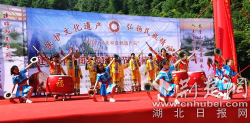 “石门河地心谷景区是我们延续不断的展演平台,我们演出的背景是大自然:或蓝天、或河流、或绿树……”石门村村民侯义恒年近七旬,是本镇的南乡锣鼓迷,几年前,他们组建的班队请来省级南乡锣鼓非遗项目传承大师郭隆炽对他们的展演曲目进行精编细排,曲目逐步走向了旅游市场,受到客人青睐。