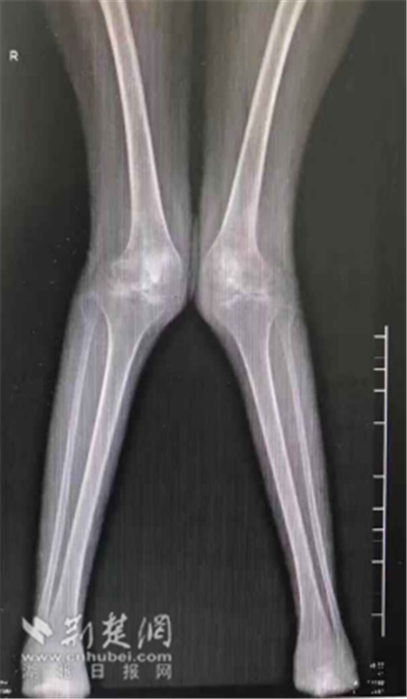 影像检查显示小叶双腿严重畸形外翻。