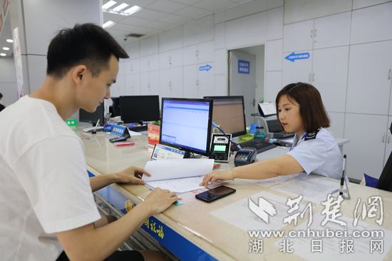 在大厅2号窗口,办税人员吴冬梅对宜昌双胞胎饲料有限公司相关负责人胡小毛说道:“贵公司事先没有办理备案减免手续,为帮助您们在申报期内完成城镇土地使用税优惠备案程序,我们为您提供容缺容错服务,先继续走流程,您按照时间约定把相关资料补齐就可以了。”