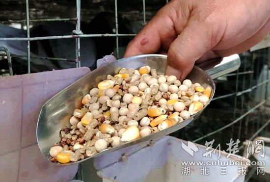 郑志兵自己配比的饲料。记者 胡小军 摄