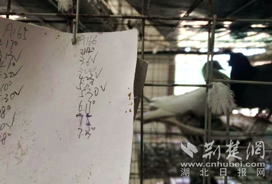 细心的郑志兵在每间鸽舍上都挂上一张硬纸板,上面记录着一些神秘数字。“这可是我的养殖密码,有的记录的是鸽子的下蛋日期,有的则是雏鸽开始哺育的时间。下蛋、哺鸟一看纸板就知道。”