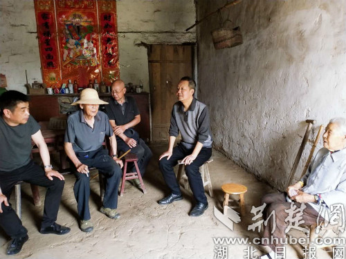 2019年4月25日,徐洲(右二)在龚场镇新邓村柳鹏林家落实低保政策