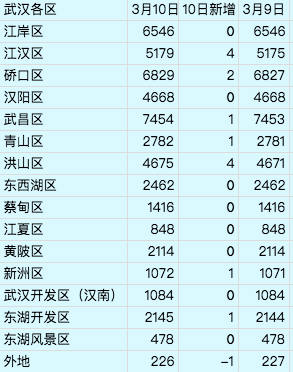 武汉市8个城区和外地新增确诊数为0。
