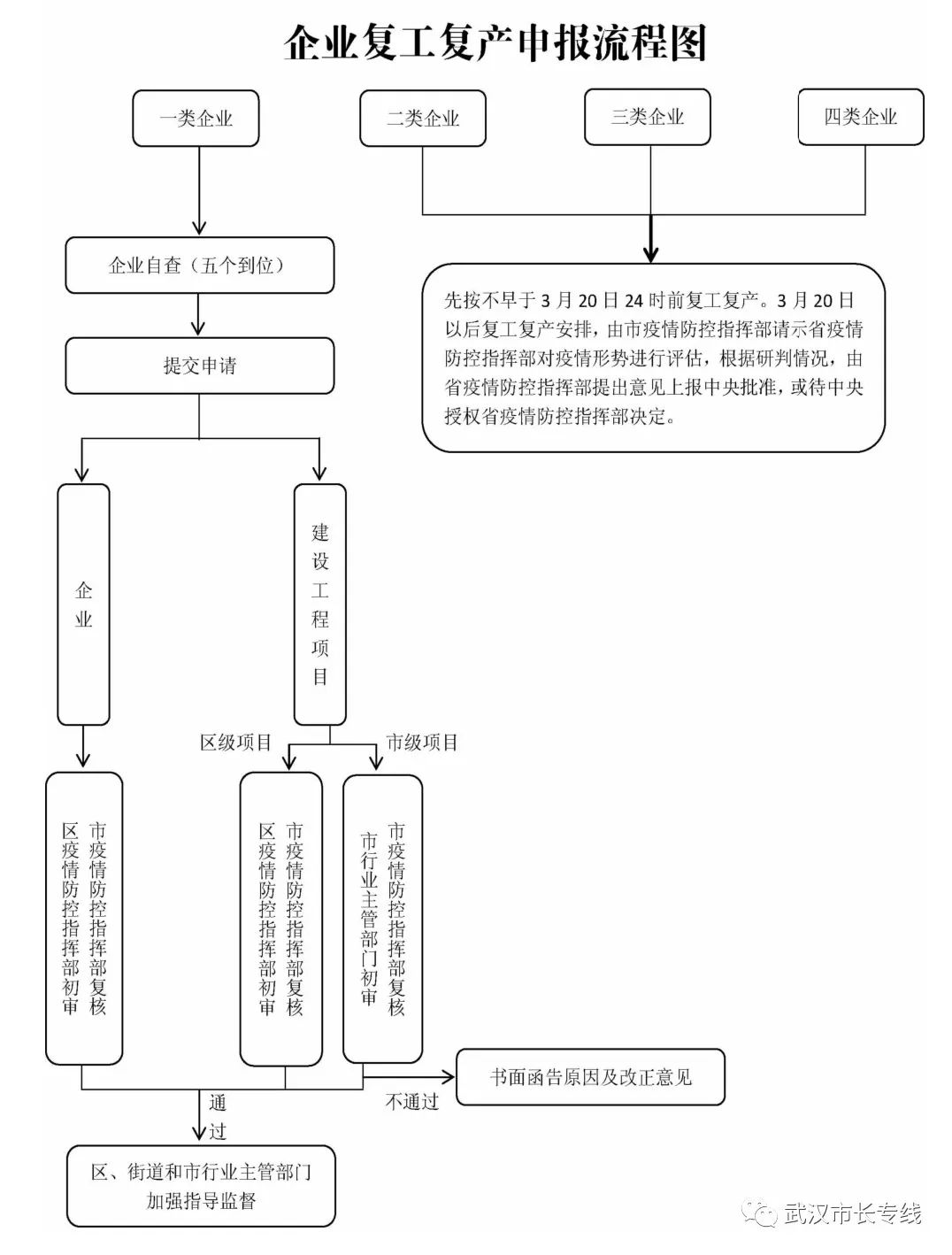 第二类、第三类和第四类企业先按不早于3月20日24时前复工复产。3月20日以后复工复产安排,由市疫情防控指挥部请示省疫情防控指挥部对疫情形势进行评估,根据研判情况,由省疫情防控指挥部提出意见上报中央批准,或待中央授权省疫情防控指挥部决定。