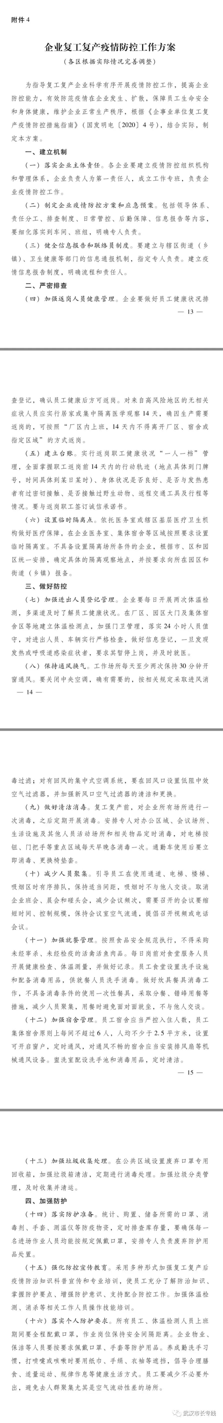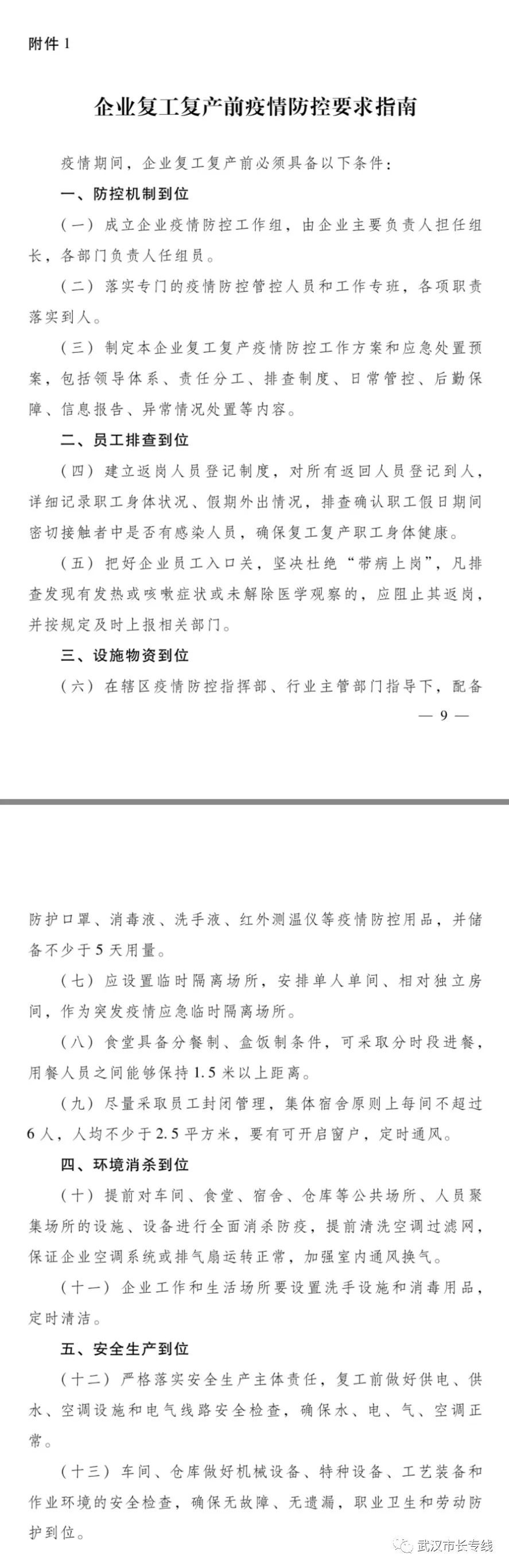 3月16日,武汉市新冠肺炎疫情防控指挥部印发《全市企业复工复产工作计划》的通知。