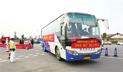 3月15日下午4时,仙桃市首批“点对点”“一站式”专车从仙桃东出发,搭乘20多名复工人员前往上海。