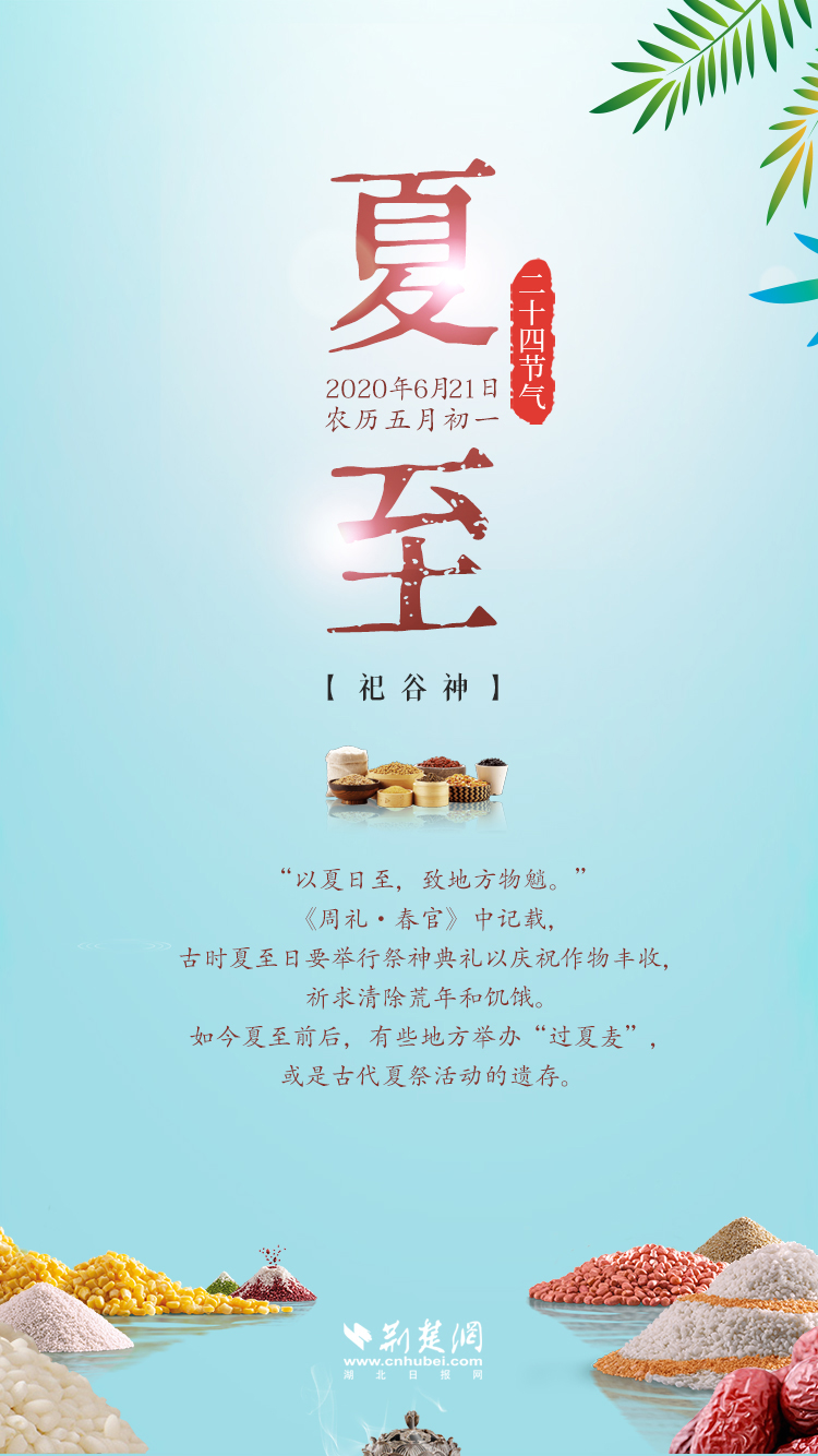 “以夏日至,致地方物魈。”《周礼•春官》中记载,古时夏至日要举行祭神典礼以庆祝作物丰收,祈求清除荒年和饥饿。如今夏至前后,有些地方举办“过夏麦”,或是古代夏祭活动的遗存。