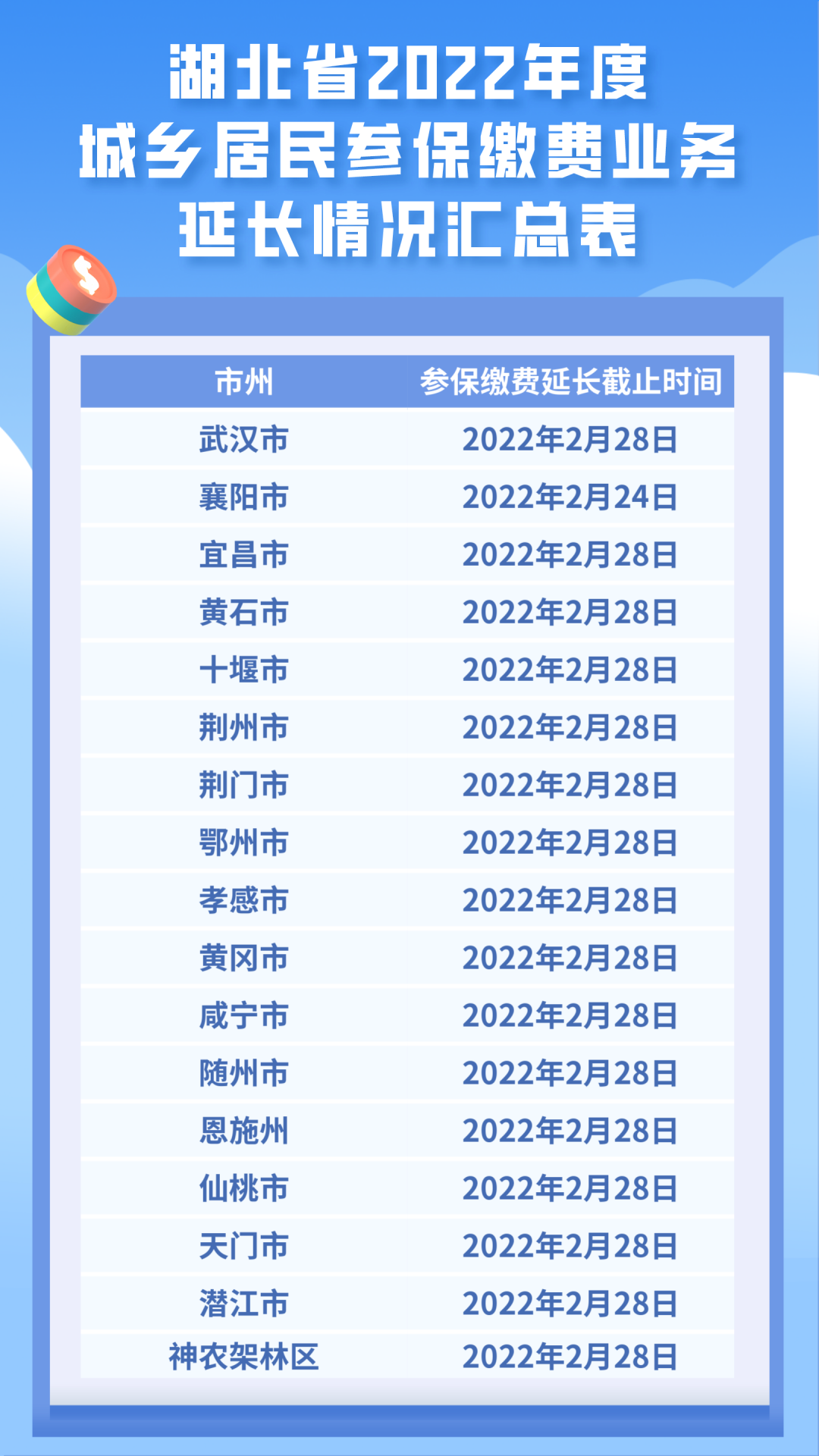 医保部门暂停全市医疗保险(含生育保险)、长期护理保险参保登记、人员增减、核定业务(含线上)。税务部门和代征银行同时暂停全市医疗保险缴费业务(含线上)。2022年度居民医保缴费业务顺延至2022年2月28日。