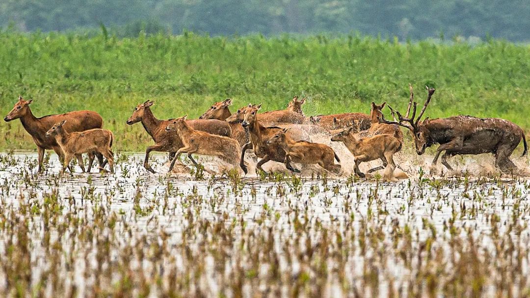 其中,湖北石首已形成全球最大野生麋鹿种群