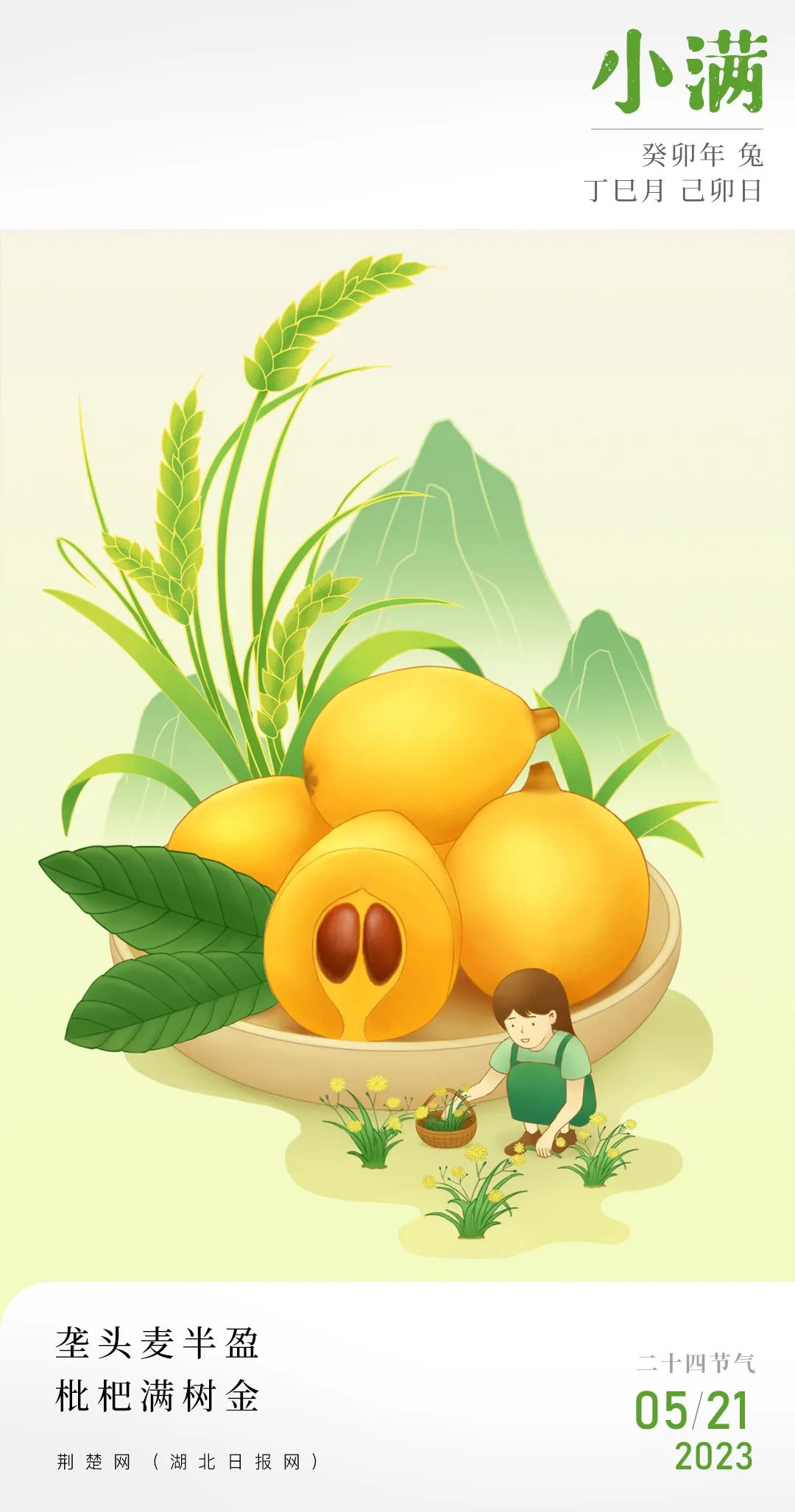 枇杷秋养蕾,冬著花,春结实,初夏黄熟,清甜多汁。明代李昌祺诗“正是江南逢此日,满林烟雨熟枇杷”,说的就是小满时节。古人认为,百果中唯枇杷“独备四时之气”,堪当“果皇”。