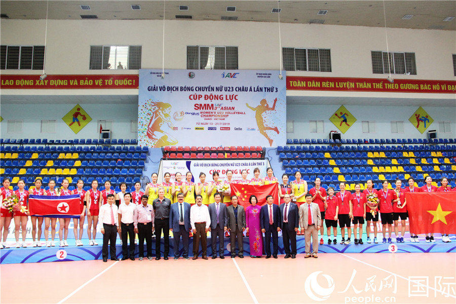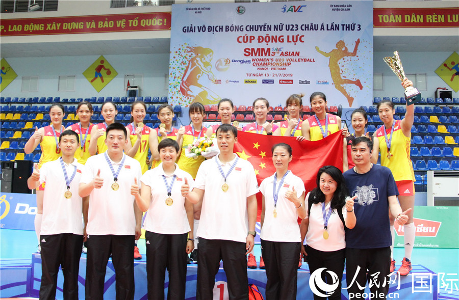 人民网河内7月22日电(记者 刘刚)2019第三届亚洲U23女排锦标赛决赛7月21日晚在越南首都河内进行,中国队3:0击败朝鲜队夺冠。