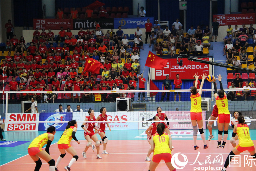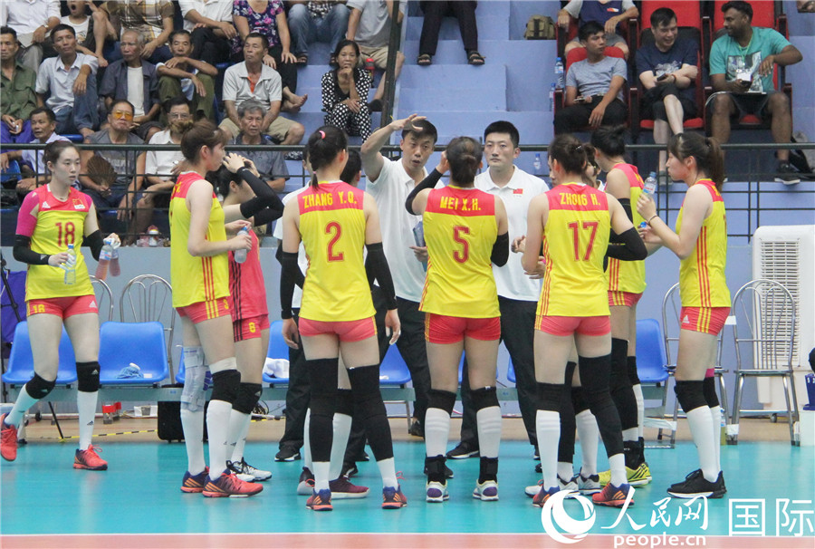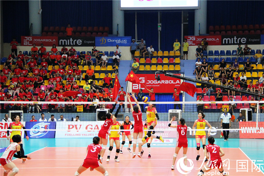 在同朝鲜队的对决中,中国队前三局比分依次为25:16、25:19和25:18,朝鲜队获得亚军。