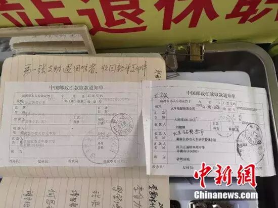 受资助旅客还钱时的汇票,刘镜辉一直保存着。 刘曼 摄