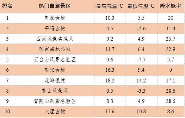 热门自驾景区预测:结合历年手机导航数据和近五年历史天气数据,预计春节期间最热门自驾景区包括湘西土家族苗族自治州凤凰古城,晋中市平遥古城和杭州市西湖风景名胜区等。