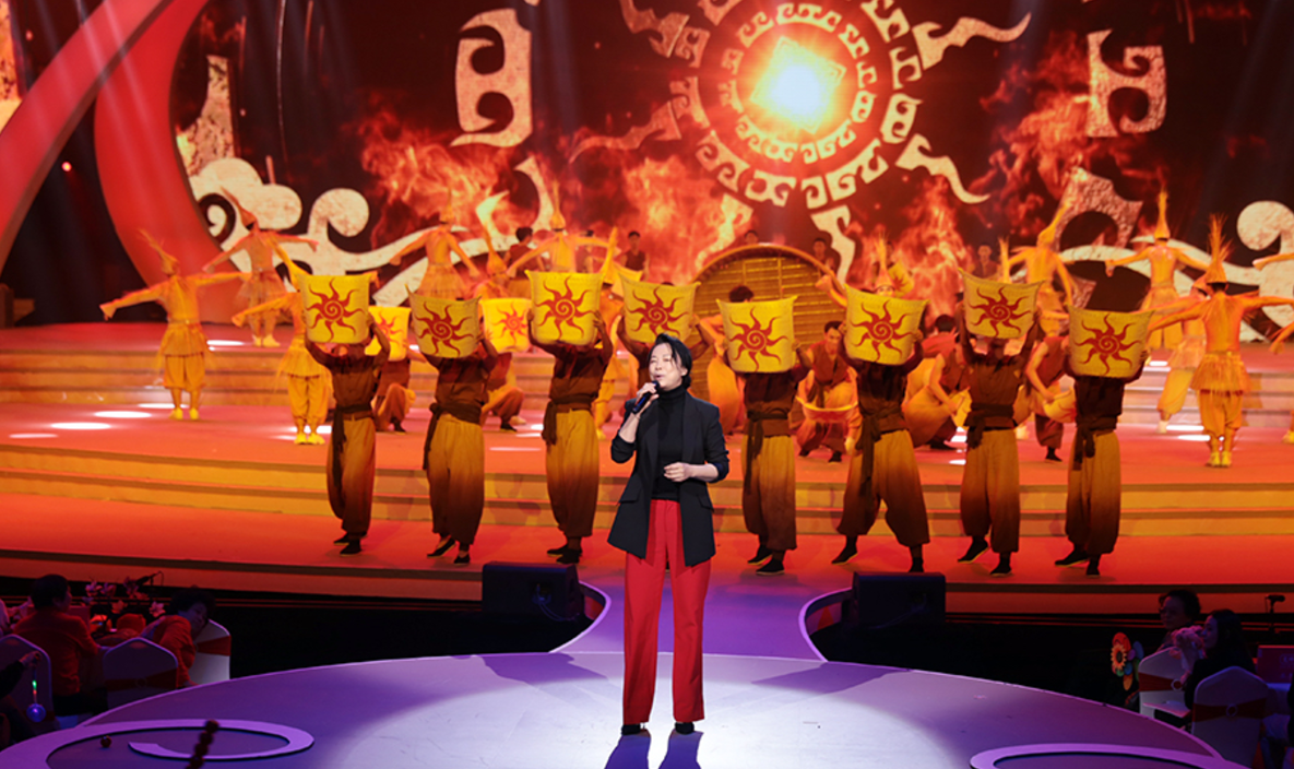 在四川民歌《太阳出来喜洋洋》的演绎中,巴蜀歌手黄绮珊用高亢激扬的嗓音配合西南少数民族筛米的劳动场景,传递出四川人对新的一年的无限热情与美好憧憬;歌舞《把爱带回家》,黑龙江籍歌手吴莫愁则用前卫的曲风诠释了温情的主题,活泼俏皮又暖意融融。舞台上冰雕与滑雪元素,营造了一个如梦似幻的冰雪童话世界,浓浓的黑龙江冰雪特色,绽放出别样风情。