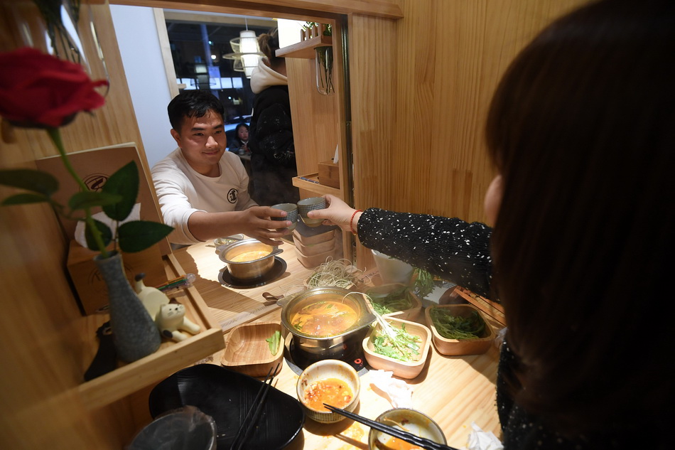 【武汉:男女同摁机关就能一起吃饭】近日,武汉某火锅店在网上走红。就餐的客人若想有一段“邂逅”,可以打开桌子上的特殊开关,若对方也恰有此意,原本相隔的桌子就会相通,可以一边烫火锅一边和陌生的有缘人聊天。