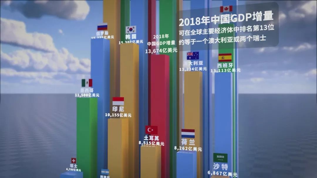 如果按美元计算,中国2018年经济增量1.4万亿美元,在全球主要经济体中排名第13位,约等于一个澳大利亚或两个瑞士!