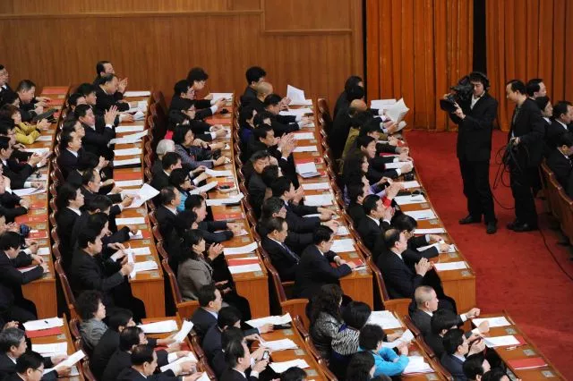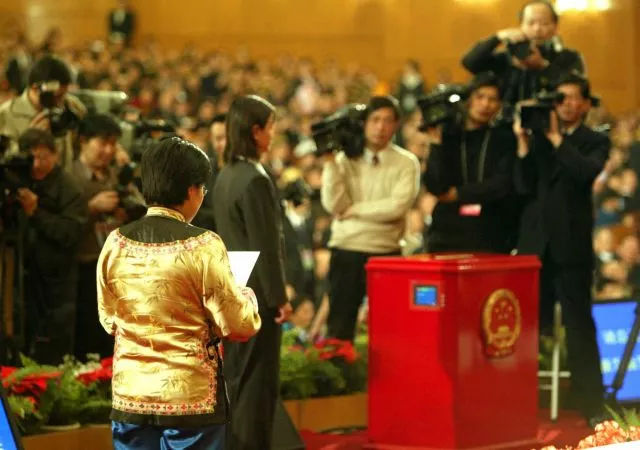 2010年3月,十一届全国人大三次会议,表决通过了关于修改选举法的决定,规定按城乡人口1比1分配代表名额。(新华社记者饶爱民摄)