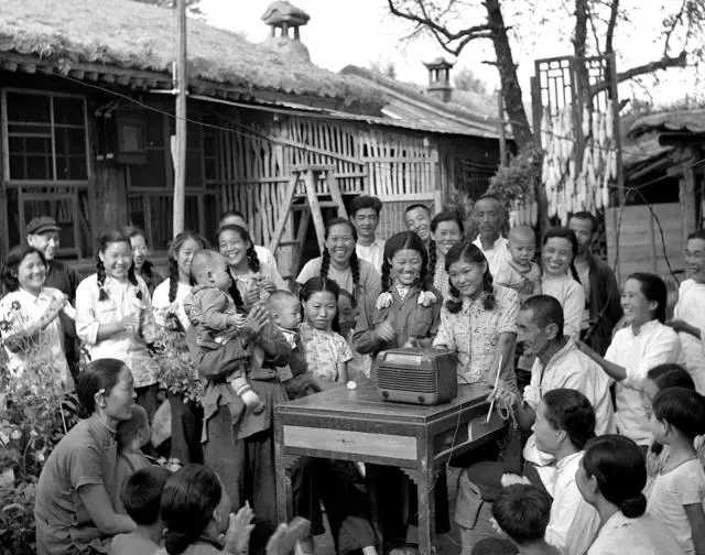 1954年9月,第一届全国人民代表大会第一次会议在北京召开。图为北京郊区农民收听会议实况转播的情形。(新华社记者张瑞华摄)