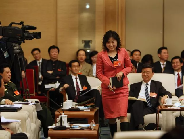2008年3月,十一届全国人大一次会议,全国三名农民工代表之一的朱雪芹首次行使自己作为全国人大代表的权力。 (新华社记者兰红光摄)