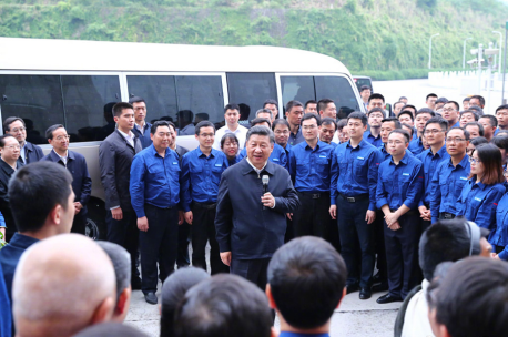 2018年4月24日下午,习近平来到三峡大坝,详细了解三峡工程建设、发电、水利、通航、生态保护等方面的情况。这是习近平视察左岸发电厂后发表重要讲话。