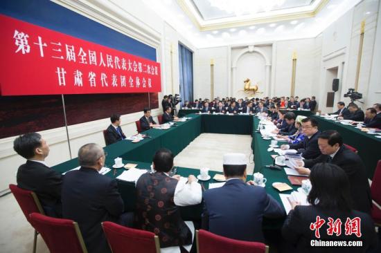 3月9日,十三届全国人大二次会议甘肃省代表团举行全体会议,审议全国人大常委会工作报告,并对中外媒体开放。中新社记者 王骏 摄