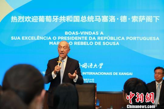 葡萄牙总统德索萨在上海外国语大学发表演讲。供图