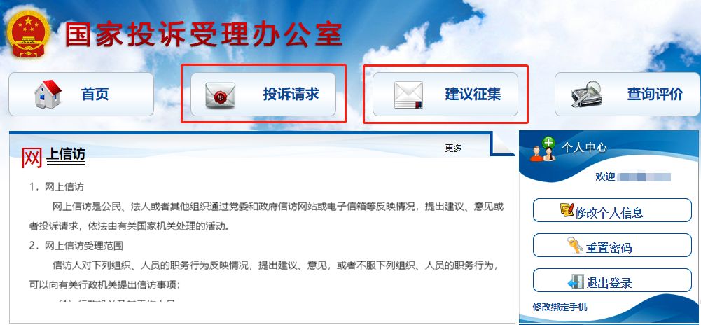 点击“投诉请求”或“建议征集”,按要求填写网上信访事项。