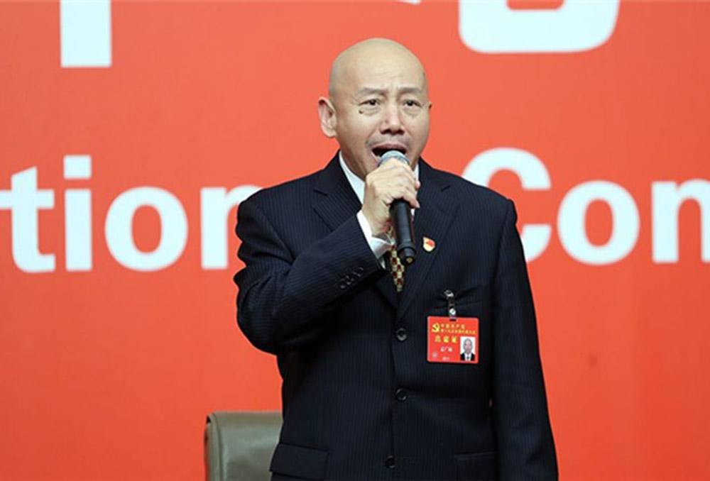 十九大期间,孟广禄参加主题为“文化发展开创新局面”的集体采访。采访期间,他应记者请求清唱京剧。(图片来源:新华网)