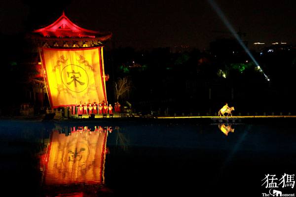 10月14日,清明上河园。河畔虹桥,明月高悬,朝代的兴衰更迭在宋词歌声中徐徐展开。这里有春花秋月下的雕栏玉砌,车水马龙中的市井风情,墙内秋千上的绿衣少女,执手相看泪眼的离别之苦,马上守天下的杨门女将,国破山河在的怒发冲冠,明月几时有的历史哲思……六幕四场的水幕演出,在虚实间再现历史画卷。