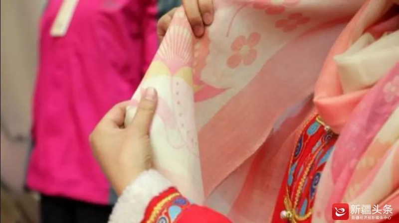冬博会上,哈巴河的驼绒产品让前来试戴的游客爱不释手。图 / 柳翔昊