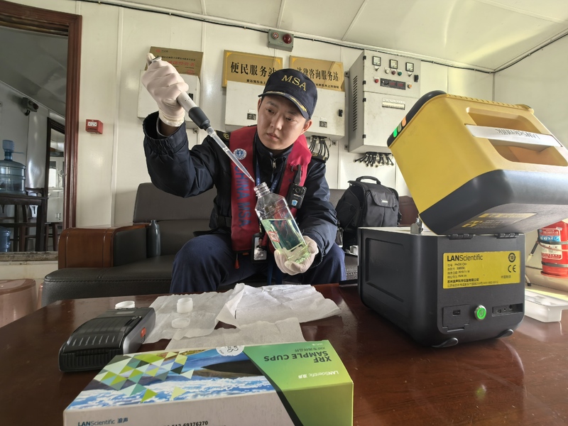 海事人员在检测加油站油品含硫量。通讯员 供图