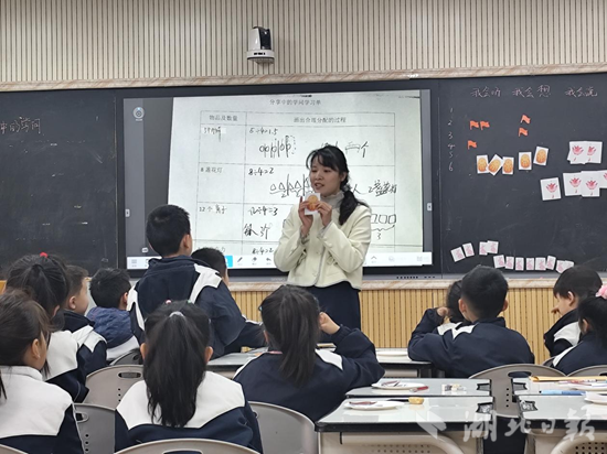 3月20日上午,在下陆区白马山小学,郭新蓓老师和周梦淇老师主讲的《分享中的学问》主题课,以生活中的分享场景为切入点,不仅让学生在数学运算中掌握分配的技巧,还在课堂互动中培养了学生的沟通与合作能力,是跨学科综合实践在人际交往领域的生动实践。