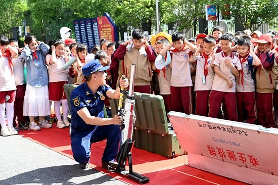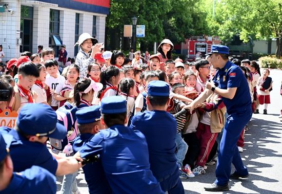 随后,消防员进行了精彩的消防技能演示,精湛的技艺和敏捷的身手让孩子们惊叹不已,现场掌声和欢呼声此起彼伏。不少同学还在消防员的指导下,亲身体验了穿戴消防战斗服,真切感受到消防员出警时的责任。