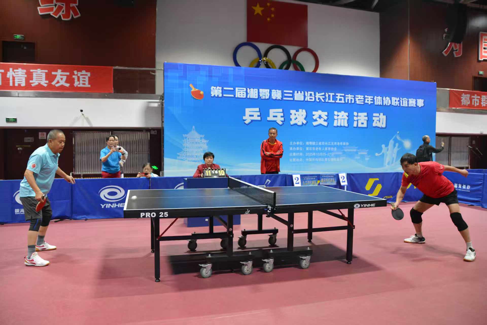 10月26日,第二届湘鄂赣三省沿长江五市老年体协联谊赛事乒乓球交流活动在中国乒乓球队黄石训练基地举行。